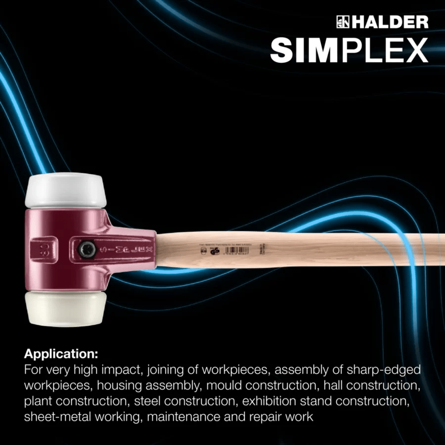 Acest articol 3023.081 - Ciocan de forjă SIMPLEX Compoziție de cauciuc / TPE-mediu; cu carcasă din fontă și coadă din lemn Hickory / (Ø: 80 mm) este o variantă a grupului de articole