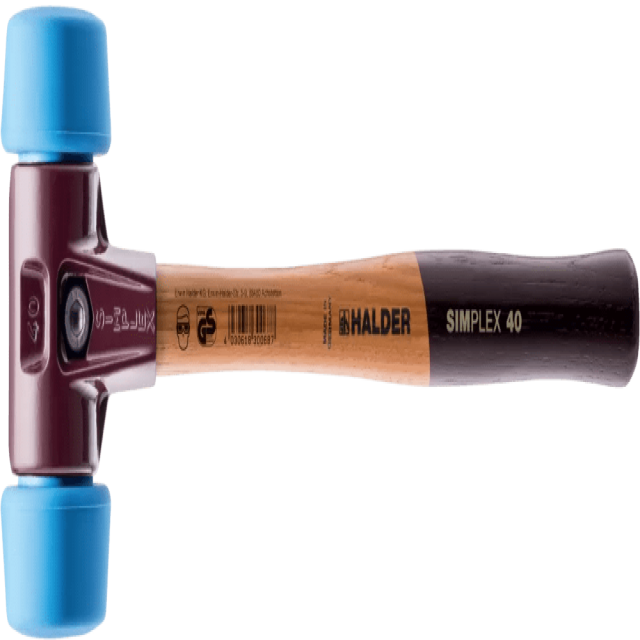 Acest model este dotat cu capul TPE-moale albastru (3201.051) pe ambele părţi. Acesta este cel mai moale cap din seria SIMPLEX, are un efect puternic de amortizare şi, prin urmare, este adecvat pentru lucrări sensibile. Comparativ cu un ciocan de cauciuc convenţional, el nu lasă nicio abraziune neagră.