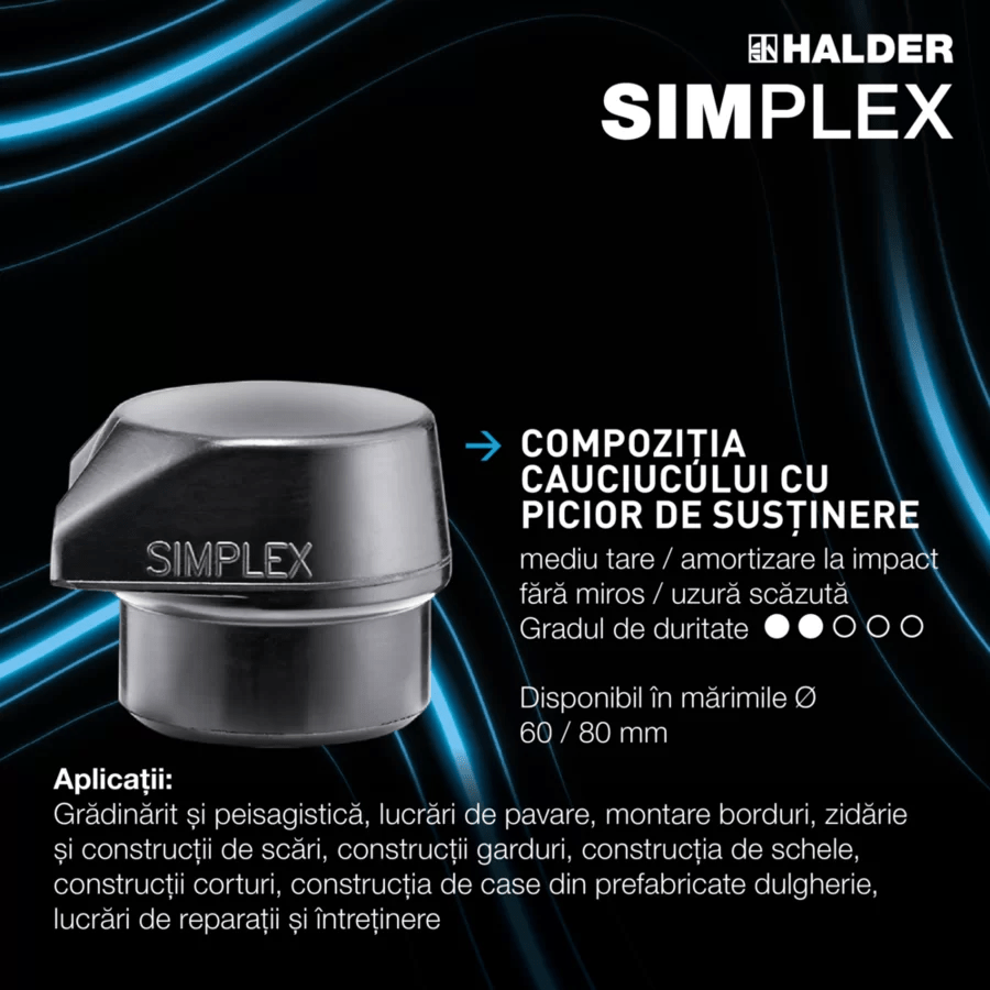 Inserţia de cauciuc cu duritate medie cu picior de susţinere (3202.2) este o dezvoltare în continuare a produsului celui mai bine vândut Halder. El prezintă uzură scăzută, amortizare la impact şi este inodor, ţinând mult mai mult decât un ciocan din cauciuc convenţional. Prin forma sa ingenioasă asigură faptul că ciocanul stă în siguranţă pe cap, nefiind nevoie de aplecarea utilizatorului, şi face munca mult mai ergonomică.