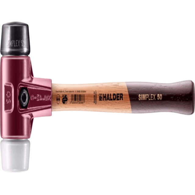Ciocanul cu cap moale SIMPLEX din seria 3027 cu combinaţia de capete compoziţie de cauciuc / superplastic este un însoţitor indispensabil pentru multe aplicaţii şi cea mai vândută variantă de la Halder.
