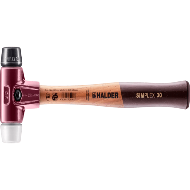 Ciocanul cu cap moale SIMPLEX din seria 3027 cu combinaţia de capete compoziţie de cauciuc / superplastic este un însoţitor indispensabil pentru multe aplicaţii şi cea mai vândută variantă de la Halder.