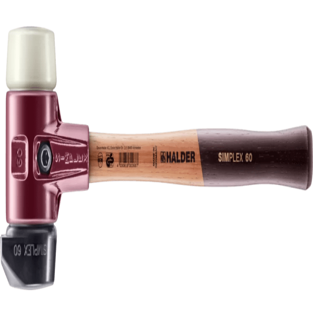 Ciocanul cu cap moale SIMPLEX D60mm şi D80mm cu combinaţia de capete din cauciuc / nylon acoperă o gamă largă de aplicaţii şi, prin urmare, este utilizat pe scară largă în industria prelucrării metalelor. Acest produs lider de vânzări al firmei Halder a fost acum dezvoltat în continuare: