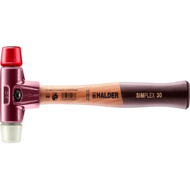 Acest articol 3068.030 - Ciocan SIMPLEX cu capete moi Plastic / nailon; cu carcasă din fontă şi coadă din lemn de înaltă calitate / (Ø: 30 mm) este o variantă a grupului de articole Ciocane SIMPLEX cu capete moi Plastic / nailon; cu carcasă din fontă şi coadă din lemn de înaltă calitate (EH 3068.)