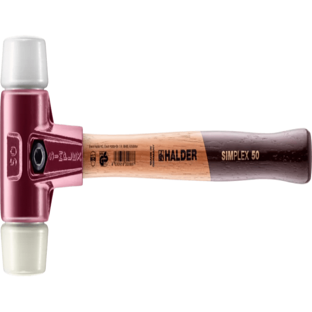 Acest articol 3078.030 - Ciocan SIMPLEX cu capete moi Superplastic / nailon; cu carcasă din fontă şi coadă din lemn de înaltă calitate / (Ø: 30 mm) este o variantă a grupului de articole Ciocane SIMPLEX cu capete moi Superplastic / nailon; cu carcasă din fontă şi coadă din lemn de înaltă calitate (EH 3078.)