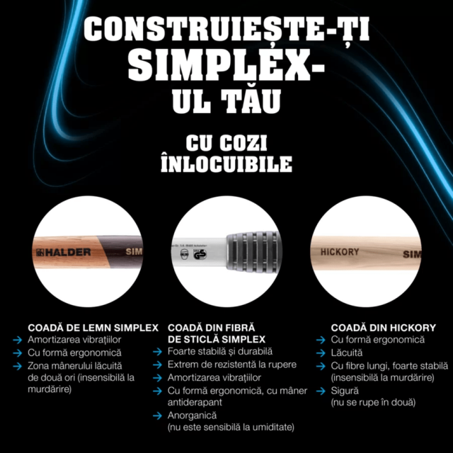Acesta este cel mai moale cap din seria SIMPLEX, are un efect puternic de amortizare şi, prin urmare, este adecvat pentru lucrări sensibile. Comparativ cu un ciocan de cauciuc convenţional, el nu lasă nicio abraziune neagră.