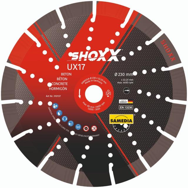 SHOXX UX17 este o lamă de diamant de top, fabricată cu tehnologia SHOXX. Foarte rapidă și sustenabilă, este o soluție pe termen lung pentru profesioniști. O tăiere superioară!