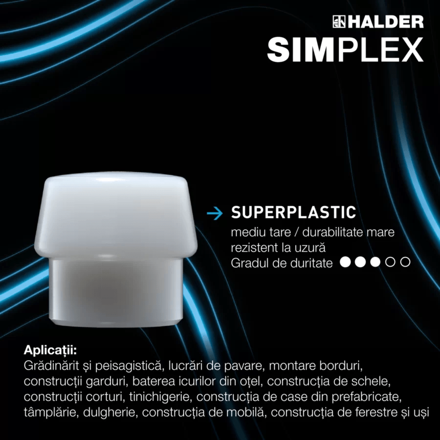 Cu o combinație de inserții din cauciuc compozit / superplastic, ciocanul cu cap moale SIMPLEX D80mm este un partener indispensabil pentru numeroase aplicații.