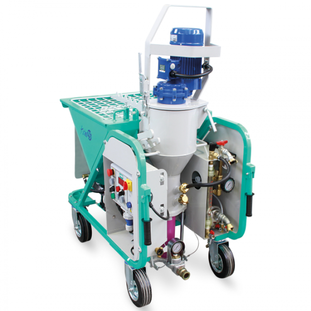 Maşina de tencuit IMER Koine 35 este destinată preparării, transportului și aplicării mortarului în timpul lucrărilor de finisare internă și externă cu amestecuri uscate gata la sac: materiale preamestecate, materiale cu densitate mica, tencuieli izolante, mortar fin etc.