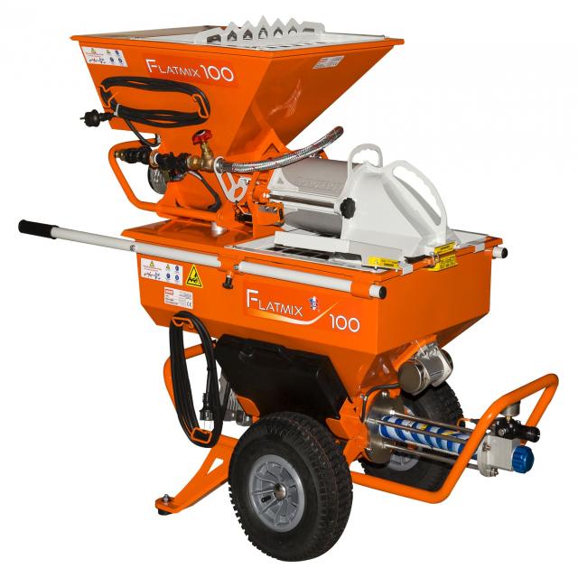 Mixer Flatmix 100 este un ansamblu de mare putere specializată în pulverizarea vopselelor de suprafață cu pulbere pe lângă produsele gata de utilizare.