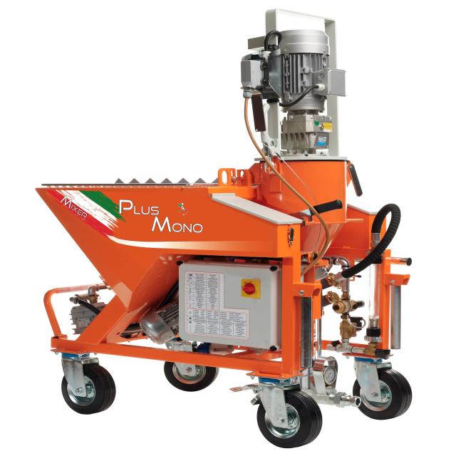 Masina de tencuit de amestec continuu monofazata (230 V), ideala pentru pulverizarea acoperirilor de suprafata preamestecate care contin var, ciment, compusi de finisare, umpluturi, compusi colorati, adezivi, sape etc. si orice produs compatibil cu pulverizarea mecanica.
