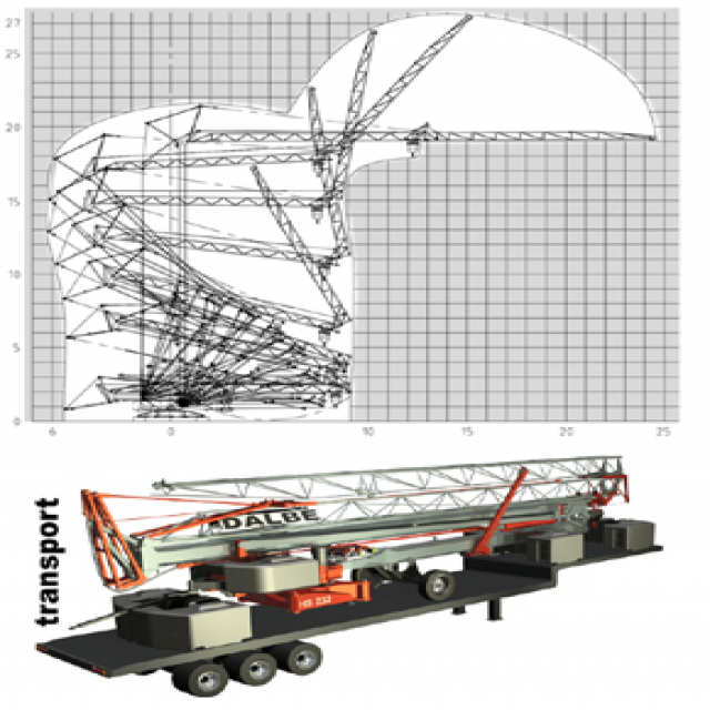 • Система ASD: двигатели и ограничители расположены внутри основания, что позволяет проводить техническое обслуживание и управление большим краном.