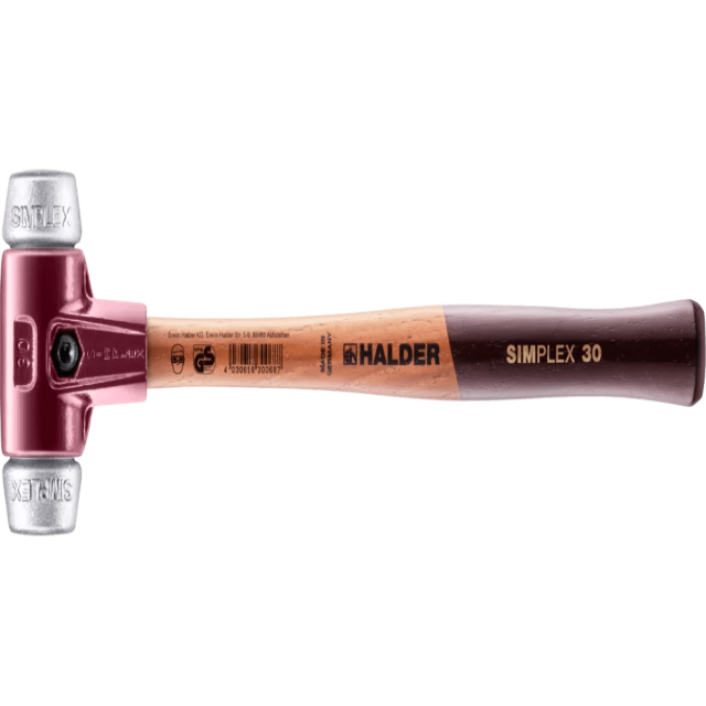 Данный артикул 3009.030 — молоток SIMPLEX с мягкими бойками из мягкого металла, с чугунным корпусом и высококачественной деревянной рукояткой (Ø: 30 мм) — это вариант из группы артикулов молотки SIMPLEX с мягкими бойками из мягкого металла, с чугунным корпусом и высококачественной деревянной рукояткой (EH 3009.)