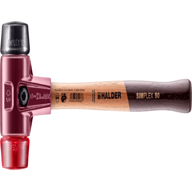 Молоток SIMPLEX из серии 3026 с комбинацией бойков из резинового композита и пластика — один из самых продаваемых продуктов Halder.