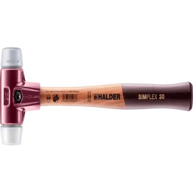 Изделие 3037.030 – молоток SIMPLEX с мягкими бойками TPE средней твёрдости / суперпластик, с чугунным корпусом и высококачественной деревянной рукояткой (Ø: 30 мм), является вариантом линейки изделий молотки SIMPLEX с бойками TPE средней твёрдости / суперпластик, с корпусом из чугуна и деревянной рукояткой (EH 3037.)