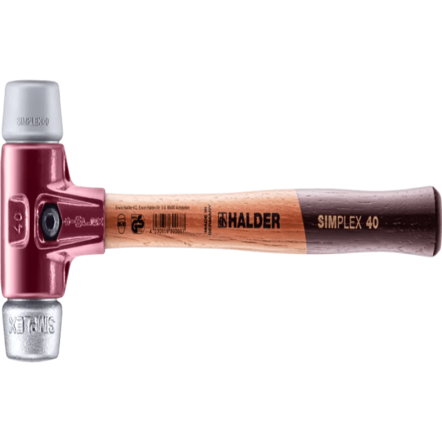 Изделие 3039.030 – молоток SIMPLEX с мягкими бойками TPE средней твёрдости / мягкий металл, с чугунным корпусом и высококачественной деревянной рукояткой (Ø: 30 мм), является вариантом группы изделий молотки SIMPLEX с бойками TPE средней твёрдости / мягкий металл, с чугунным корпусом и деревянной рукояткой (EH 3039.)