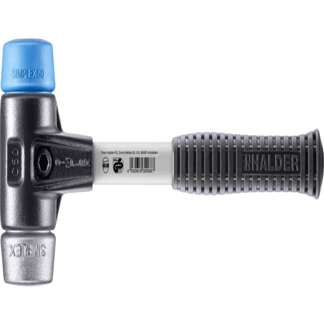 Молоток с мягким бойком SIMPLEX с комбинацией бойков из мягкого TPE (синий, мягкий, не оставляет следов) / мягкого металла (серебристый, твёрдый, термостойкий).