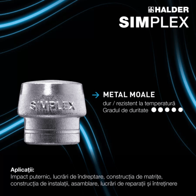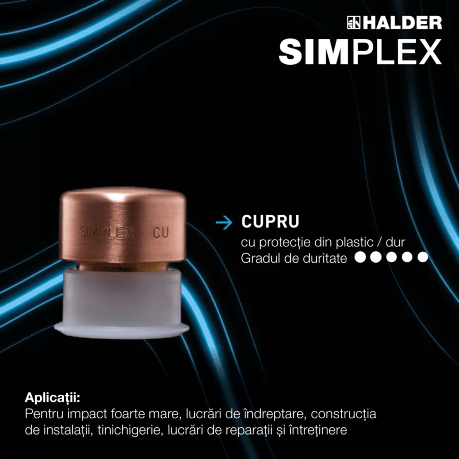 Молоток SIMPLEX с мягкой насадкой оснащён комбинацией вставок: медь и мягкий металл.