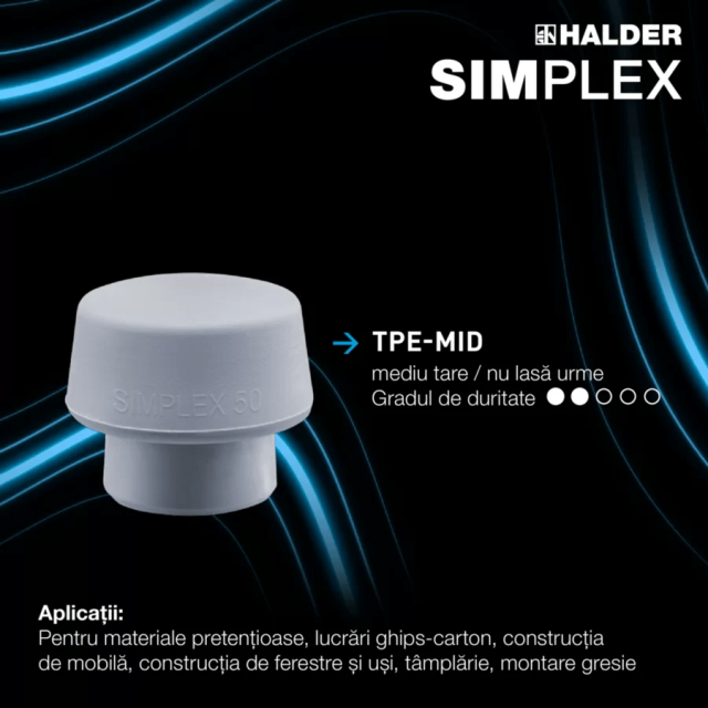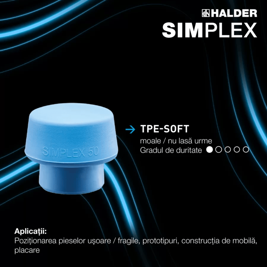 Синяя вставка TPE-soft — самая мягкая в линейке SIMPLEX, она отлично амортизирует удары при деликатной работе. В отличие от обычных резиновых молотков, не оставляет чёрных следов.