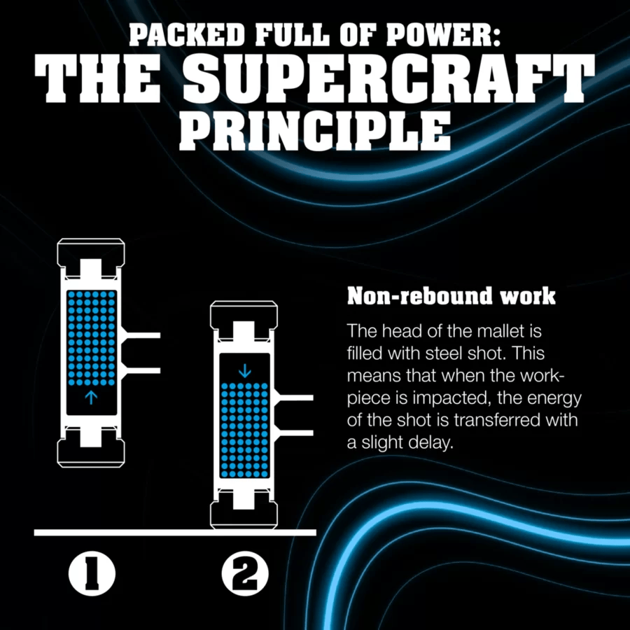 Вставка из суперпластика средней жёсткости позволяет наносить сильные удары без повреждения древесины.