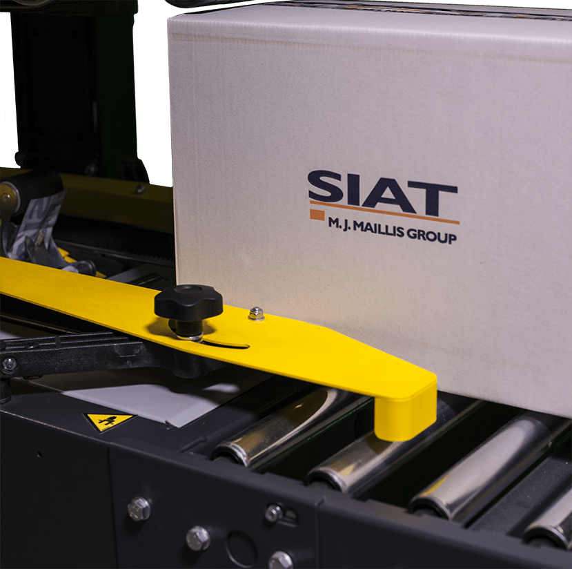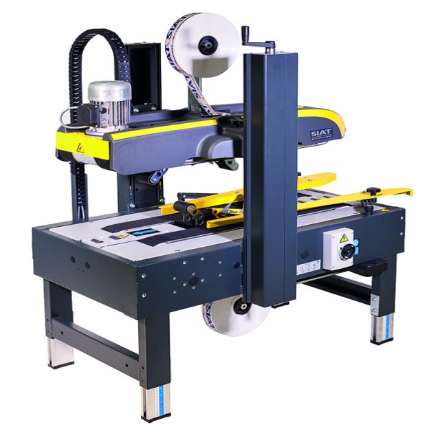 SK20 — это полуавтоматическая машина для запечатывания коробок с двойными приводными ремнями сверху и снизу, разработанная и спроектированная компанией SIAT для запечатывания клейкой лентой как верхней, так и нижней стороны коробок одинакового размера с ручной регулировкой, от малых до средних. Также доступна более крупная версия SK27, способная обрабатывать коробки большего размера.