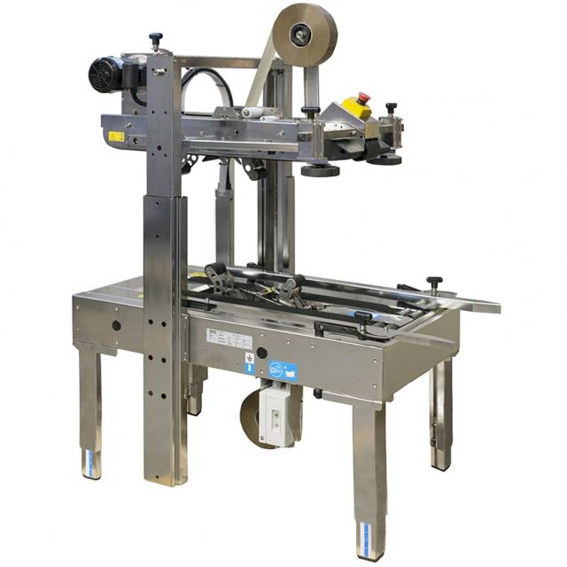 SM2-I — полуавтоматический запайщик коробов с ручной регулировкой, изготовленный из нержавеющей стали.