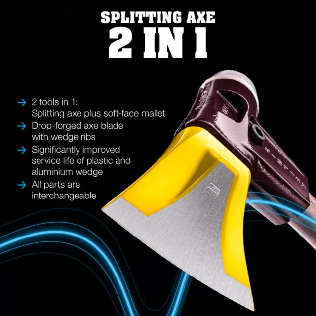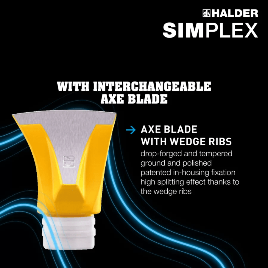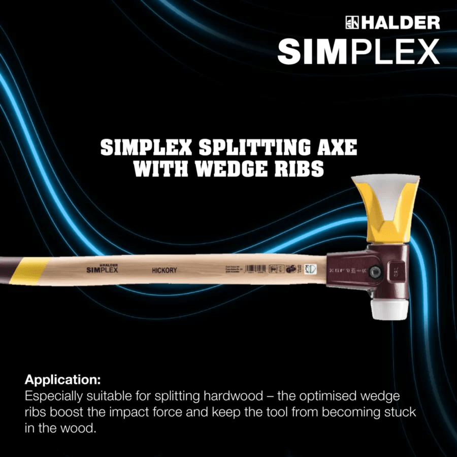 Topoarele de despicat SIMPLEX de la Halder combină două unelte într-una, un topor de despicat şi un ciocan cu cap moale de calitate profesională absolută, oferind astfel posibilitatea de economisire considerabilă a costurilor comparativ cu achiziţia individuală.